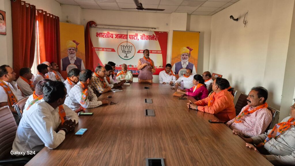 बीकानेर ।लोकसभा प्रत्याशी अर्जुनराम मेघवाल के नामांकन से पूर्व आज भाजपा कार्यालय में शहर जिलाध्यक्ष विजय आचार्य की अध्यक्षता में जिला पदाधिकारी, विधानसभा संयोजक, मंडल मोर्चा अध्यक्षों की बैठक रखी गई जिसमे बीकानेर लोकसभा प्रत्याशी अर्जुनराम मेघवाल के नामांकन कार्यक्रम व जनसभा को लेकर चर्चा की गई किस तरह इस आयोजन को विशाल और भव्य बनाया जा सके भाजपा शहर जिलाध्यक्ष विजय आचार्य ने कहा बीकानेर लोकसभा प्रत्याशी अर्जुनराम मेघवाल कल 27 मार्च को भाजपा प्रत्याशी के रूप में अपना नामांकन दाखिल करेंगे जिसकी नामांकन सभा सुबह 14 बजे गांधी पार्क रविंद्र रंगमंच के आगे रखी गई है इस इस नामांकन सभा की भव्यता इतनी है हमारे विशेष आग्रह पर हमारे लिए सौभाग्य की बात है अपने अति व्यस्तम कार्यक्रम के बावजूद समय देते हुए मुख्यमंत्री भजनलाल शर्मा ने नामांकन सभा में पहुंच कर इस सभा को संबोधित करेंगे बीकानेर की इस नामांकन सभा में भाजपा के प्रदेश, संभाग, जिले के पधाधिकारी, कार्यकर्ता, आमजन भारी संख्या में उपस्थित रहेंगे और हमारे लोकप्रिय प्रत्याशी केंद्रीय कानून मंत्री का नामांकन से पहले जनता इनको लाखों मतों से विजय बनाने का मन बना चुकी है । आज की बैठक में लोकसभा संयोजक सत्यप्रकाश आचार्य ने कहा आगामी 30 मार्च को भाजपा महिला मोर्चा द्वारा महिला सम्मेलन व 31 मार्च को मंडल अध्यक्षों द्वारा बूथ सम्मेलन का आयोजन किया जाएगा आज की बैठक में प्रदेश कार्यकारणी सदस्य मुमताज अली भाटी, विधानसभा संयोजक गोपाल गहलोत, जेपी व्यास, महामंत्री मोहन सुराणा, श्याम सुंदर चौधरी, उपाध्यक्ष हनुमान सिंह चावड़ा, बाबूलाल गहलोत, जितेंद्र राजवी, गोकुल जोशी, आनंद सिंह भाटी, विजय उपाध्याय, भगवान सिंह मेड़तिया, मंत्री मनीष सोनी, सांगीलाल गहलोत, इंद्रा व्यास, जगदीश सोलंकी, महेश व्यास, कौशल शर्मा, भारती अरोड़ा, प्रवक्ता अशोक प्रजापत, कुणाल कोचर, कैलाश राजपुरोहित, मोर्चा अध्यक्ष ओम प्रकाश मीणा, राजाराम सीगड़, चंद्रमोहन जोशी, सुशील आचार्य, सुमन छाजेड़, सोहन चांवरिया, उस्मान गनी, वेद व्यास, मंडल अध्यक्ष नरसिंह सेवग, अजय खत्री, मुकेश ओझा, जेठमल नाहटा, अभय पारीक, कमल आचार्य, कपिल शर्मा, गोपाल अग्रवाल उपस्थित रहे।