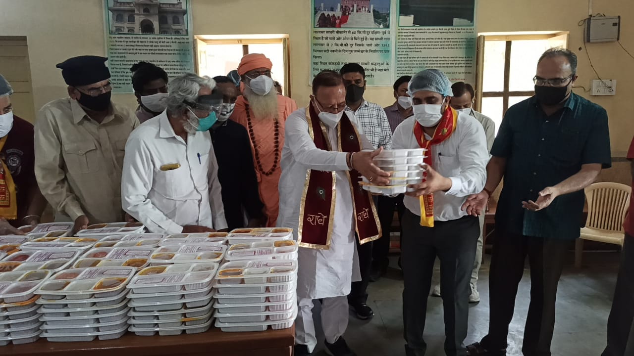 बीकानेर, ( ओम एक्सप्रेस )। ऊर्जा तथा जन स्वास्थ्य अभियांत्रिकी मंत्री डाॅ. बी. डी. कल्ला ने रविवार को अलौकिक फाउण्डेशन ट्रस्ट द्वारा संवित् सोमगिरि महाराज की स्मृति में कोरोना संक्रमित मरीजों तथा उनके परिजनों के लिए निःशुल्क 1008 थाली भोजन वितरण कार्यक्रम में भागीदारी निभाई।