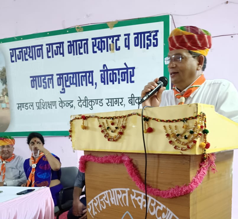 -राज्य सचिव ने किया आकस्मिक विजिट बीकानेर ।राजस्थान राज्य भारत स्काउट गाइड राष्ट्रीय मुख्यालय नई दिल्ली के निर्देशानुसार मण्डल प्रशिक्षण केंद्र रिडमलसर बीकानेर में राज्य स्तरीय प्रेसिडेंट रोवर टैस्ट कैंप का आयोजन राज्य मुख्यालय के तत्वावधान में किया जा रहा है।शिविर संचालक एवम् सहायक राज्य संगठन आयुक्त बीकानेर मान महेंद्र सिंह भाटी ने बताया कि शिविर के चतुर्थ दिन स्वामी केशवानंद कृषि विश्वविद्यालय बीकानेर के कुलपति डॉ.अरुण कुमार के मुख्य आतिथ्य,स्काउट गाइड के राज्य सचिव डॉ. पी. सी. जैन की अध्यक्षता तथा राष्ट्रीय