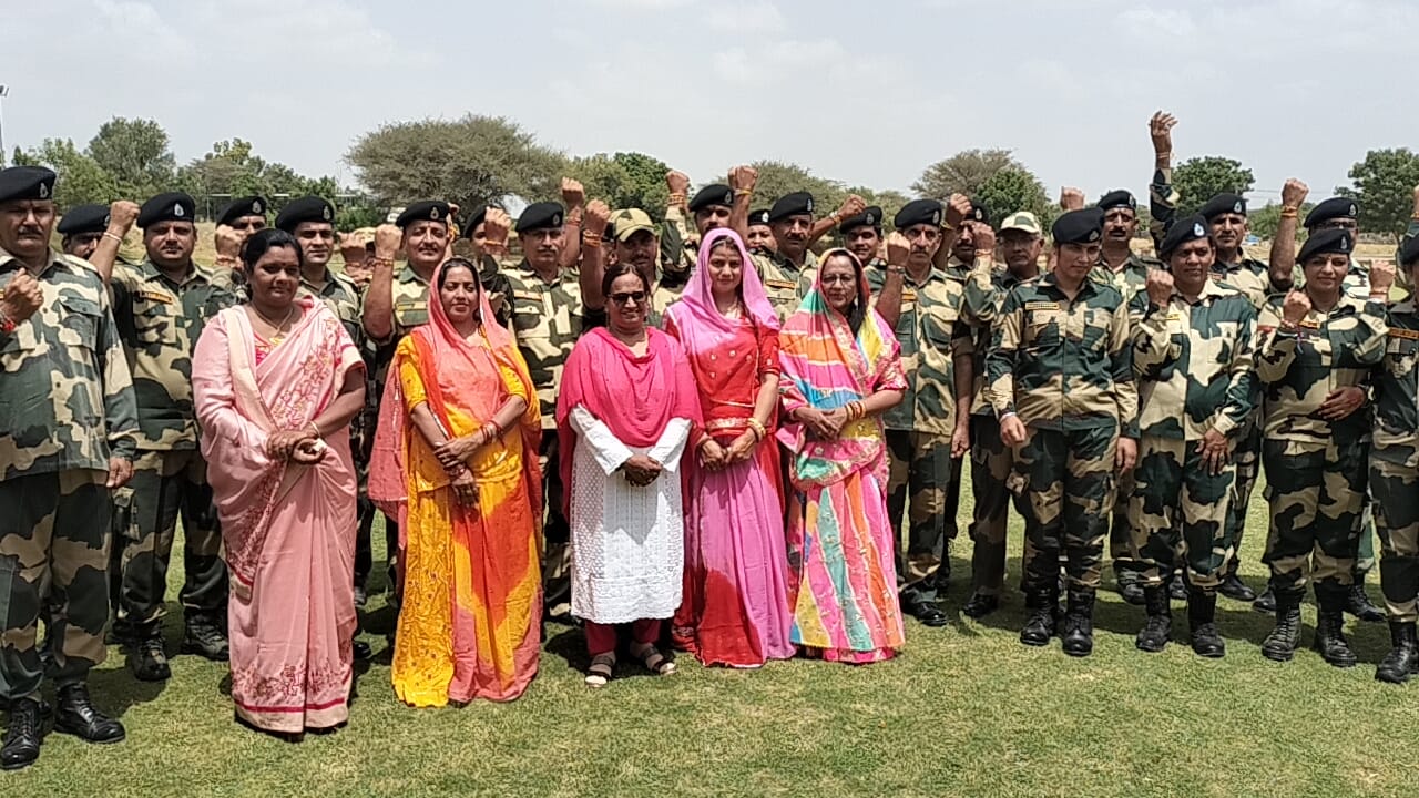बीकानेर । बीकानेर में रक्षाबंधन का पर्व धार्मिक उल्लास और परंपरागत तरीके से मनाया गया ।  इस अवसर पर  जहां रोडवेज में निशुल्क यात्रा को लेकर महिलाओं बच्चों में विशेष उत्साह तो नजर आया ही ।  वही इस अवसर  जिले से लगती अंतरराष्ट्रीय भारत पाक सीमा सरहद  और सीमा सुरक्षा बल सेक्टर मुख्यालय पर भी रक्षाबंधन का पर्व उत्साह पूर्वक मनाया गया । जिले की “ड्रीम टीम संस्थान” के महिला पदाधिकारियों ने सीमा सुरक्षा बल सेक्टर मुख्यालय पर पहुंच कर  बीएसएफ के जवानों का मुंह मीठा करा कर उन्हें राखी बांध उनकी हौसला अफजाई की । वही सीमा सुरक्षा बल के महिला जवानों ने भी सीमा सुरक्षा बल के पुरुष जवानों को राखी बांध मुंह मीठा कराया । इस अवसर पर डीआईजी बीएसएफ पुष्पेंद्र सिंह राठौड़ ने बताया कि रक्षा सूत्र बांधने के इस आयोजन का उद्देश्य बॉर्डर पर देश के लिए खड़े जवानों का मनोबल बढ़ाना है। उन्होंने  ड्रीम टीम संस्थान की महिला पदाधिकारियों का आभार व्यक्त करते हुए कहा कि  उन्होंने अपने घरों से दूर यहां बॉर्डर पर  बैठे जवानों को राखी बांधकर, तिलक लगाकर एवम मिठाई खिलाकर  सही अर्थों में भारतीय परिवेश में रक्षाबंधन का उत्सव मनाया है। उन्होंने कहा कि इससे आमजन में भी ये संदेश जाएगा कि भारत की सीमा पर प्रथम सुरक्षा पंक्ति के रूप में देश की सीमाओं की रक्षा करने वालों के साथ भारत की प्रत्येक महिला है।  यह हसीन पल है जब इस देश का जवान अपने जोश और जज्बे के साथ सीमा पर तैनात है ऐसे में अपने परिवार से दूर होने की याद एहसास उन्हे ना सताए ऐसे में जिले की बहनों ने सीमा सुरक्षा बल के जवानों को राखी बांध देश की सुरक्षा और खुद की सुरक्षा के लिए जवान भाई की दीर्घायु एवं सुख समृद्धि वैभव की कामना कलाई पर रक्षा सूत्र बांधकर की । जवानों को रक्षा सूत्र बांधने पहुंची अंजुमन आरा , अर्चना आचार्य, नीरू, मनीषा और सुषमा गोयल व अन्य ने बताया कि राखी के अवसर पर ये बेहतरीन पल थे जब हम सब जवानों से रूबरू होकर उन्हें अपनेपन का अहसास करवाया ।  सरहद के इन जवानों को दिन रात घर परिवार से दूर , चौकसी में जुटे इन जवानों को घर से दूर होने का एहसास ना हो , अपनो ओर  अपनी बहनों की कमी ना खले ऐसे में हम सब उनके साथ रक्षाबंधन का त्यौहार मनाने पहुंचे हैं   । सीमा सुरक्षा बाल की महिला जवान मंजीत कौर और पुरुष जवान अंकुर डांगी तथा सीमा सुरक्षा बल के अन्य जवानों ने अपनी अपनी भावनाएं अभिव्यक्त करने के साथ-साथ  ड्रीम टीम संस्थान की महिला पदाधिकारी के साथ बैठकर काफी देर तक सीमा पर अपने कार्य , हौसलों की को लेकर चर्चा की । इस अवसर पर सीमा सुरक्षा बल सेक्टर मुख्यालय की ओर से  संस्थान की और से आई महिला पदाधिकारीयो केलिए अल्प आहार की भी व्यवस्था की गई ।