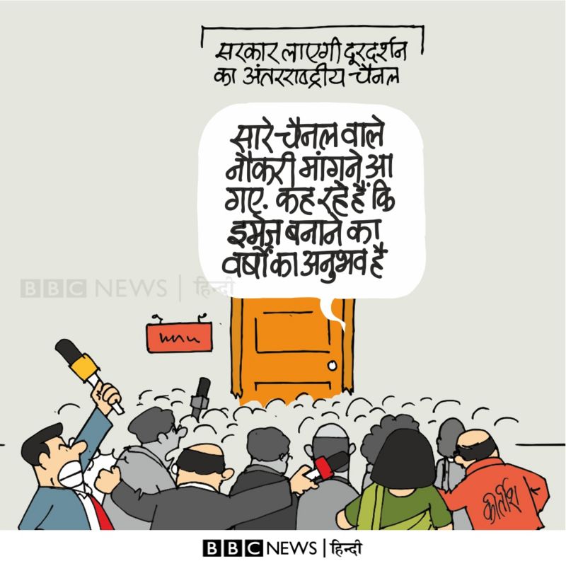 इस प्रस्तावित ‘डीडी इंटरनेशनल’ चैनल में होने वाली भर्तियों को लेकर बीबीसी ने पोस्ट किया यह कार्टून
