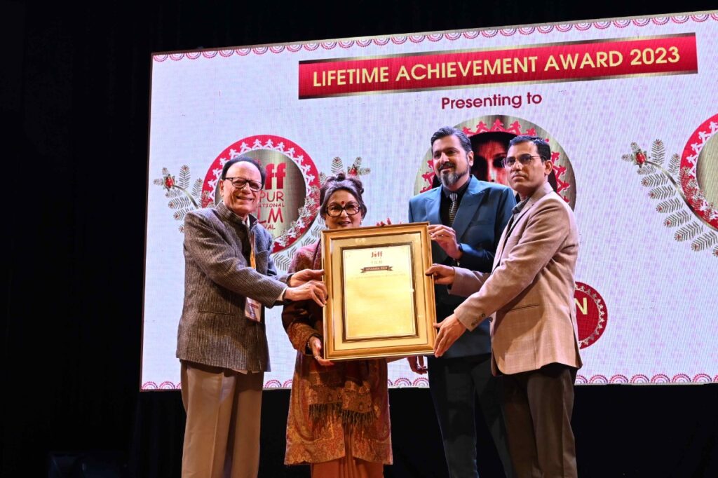 भारत की जानी-मानी अभिनेत्री, स्क्रीन प्ले और फिल्म निर्देशक अपर्णा सेन को इस बार जयपुर इंटरनेशनल फिल्म फैस्टिवल के लाइफ टाइम अचीवमेंट अवार्ड से नवाजा गया। अपर्णा सेन फिल्म निर्देशक , पटकथा लेखक और अभिनेत्री हैं जो बंगाली सिनेमा में अपने काम के लिए जानी जाती हैं । उन्हें एक अभिनेत्री और फिल्म निर्माता के रूप में कई पुरस्कार मिले हैं, जिनमें नौ राष्ट्रीय फिल्म पुरस्कार , पांच फिल्मफेयर पुरस्कार और तेरह बंगाल फिल्म पत्रकार संघ पुरस्कार शामिल हैं। कला के क्षेत्र में उनके योगदान के लिए, भारत सरकार ने उन्हें देश के चैथे सर्वाेच्च नागरिक पुरस्कार पद्मश्री से भी सम्मानित किया है।