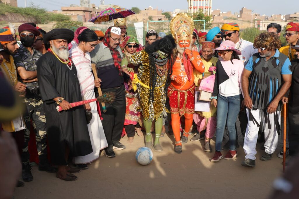 भगवान श्री राम जी, भगवान श्री कृष्ण जी,राधा जी,भगवान श्री हनुमान जी, भगवान श्री शिव जी केजरीवाल, नरेंद्र मोदी,ममता बनर्जी,भगवंत मान भूतो,मिस इंडिया तथा पुतिन ने फुटबॉल खेल कर दम खम दिखाया तथा हज़ारों लोगों ने बीकानेर में आयोजित इस मैच को रोमांचक बना दिया ।इस मैच में बड़ी संख्या में महिलाओं ने भी मैच का आनंद लिया ।