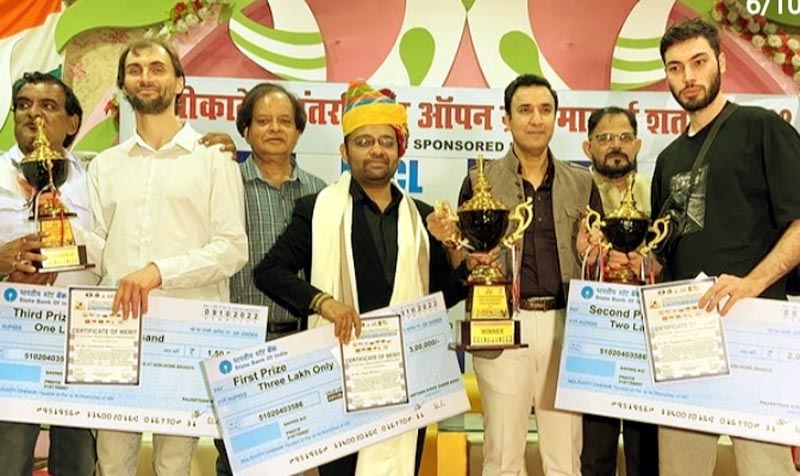 बीकानेर। नोखा रोड स्थित आशीर्वाद भवन में आयोजित बीकानेर में प्रथम अंतरराष्ट्रीय ओपन ग्रांड मास्टर्स प्रतियोगिता का समापन समारोह पूर्वक किया गया। राजस्थान शतरंग संघ के प्रदेशाध्यक्ष महावीर रांका ने बताया कि दसवें राउण्ड की समाप्ति के बाद ग्रांड मास्टर अभिजीत गुप्ता चैम्पियन घोषित हुए। गुप्ता को तीन लाख रुपए का पुरस्कार दिया गया। अभिजीत गुप्ता और रूस के बोरिस के मध्य परिणाम ड्रॉ रहा। प्रतियोगिता निदेशक एसएल हर्ष ने बताया कि मंगोलिया के बचूलिन और ईरान के तहबाज अर्श के मध्य भी खेल ड्रॉ रहा। ईरान के तहबाज अर्श को दो लाख रुपए का पुरस्कार मिला तथा दूसरे स्थान पर रहे। प्रतियोगिता प्रबंधक पवन महनोत ने बताया कि तीसरे स्थान पर रूस के बोरिस रहे जिन्हें डेढ़ लाख का पुरस्कार दिया गया। प्रतियोगिता में बी कैटेगरी के समापन पर 10 लाख के तथा ए कैटेगरी प्रतियोगिता में 20 लाख रुपए के पुरस्कार अर्थात् कुल 30 लाख रुपए के पुरस्कार प्रतिभागियों को बांटे गए। देशी व विदेशी सभी खिलाडिय़ों ने राजस्थान शतरंज संघ के प्रदेशाध्यक्ष महावीर रांका के नेतृत्व में की गई व्यवस्थाओं तथा मान-मनोव्वल की सराहना की। प्रतियोगिता सहप्रबंधक रमेश भाटी ने बताया कि समापन समारोह की अध्यक्ष करते हुए संजय कपूर ने कहा कि ऐसी प्रतियोगिताओं से खिलाडिय़ों का उत्साह बढ़ता है साथ ही देश के खिलाडिय़ों की प्रतिभाएं भी उभर कर आती हैं। 15 देशों से आए 300 से अधिक खिलाडिय़ों द्वारा आयोजित यह प्रतियोगिता पूरे राजस्थान की एक बड़ी उपलब्धि है।