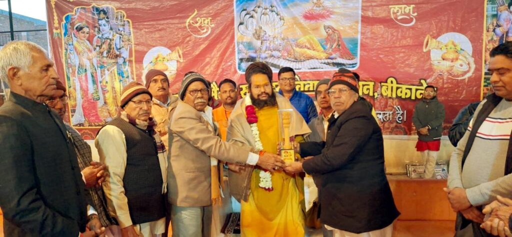 बीकानेर। गोपेश्वर बस्ती स्थित माली समाज समाज भवन में माली सैनी सामूहिक विवाह संस्था द्वारा सम्मान समारोह आयोजित किया गया। माली सैनी सामूहिक विवाह संस्था के अध्यक्ष कन्हैयालाल भाटी ने बताया कि 19 नवम्बर से 27 नवम्बर तक 108 कुंडीय रामचरित मानस महायज्ञ एवं जगद्गुरु पद्मविभूषित रामभद्राचार्यजी के श्रीमुख से राम कथा के वाचन का सौभाग्य बीकानेरवासियों को मिला। रामझरोखा कैलाशधाम के पीठाधीश्वर श्रीसरजूदासजी महाराज के इस दिव्य और भव्य आयोजन से बीकानेरवासियों को धर्म लाभ दिलवाने तथा कार्यक्रम के दौरान उन्हें राष्ट्रीय संत की उपाधि मिलना बीकानेर के लिए और भी गौरव का विषय रहा। उक्त दोनों उपलब्धियों के लिए राष्ट्रीय संत श्रीसरजूदासजी महाराज का माली सैनी सामूहिक विवाह संस्था द्वारा अभिनन्दन किया गया। अध्यक्ष कन्हैयालाल भाटी ने बताया कि 23 नवम्बर 2023 को माली समाज का सामूहिक विवाह समारोह आयोजित हुआ था जिसमें सात जोड़े परिण्य सूत्र में बंधे। उक्त वैवाहिक समारोह में माली सैनी सामूहिक विवाह संस्था के पदाधिकारियों, कार्यकर्ताओं, कोर कमेटी, वर-वधू जोड़ों के माता-पिता का अभिनन्दन किया गया। इसके साथ ही 12 उन समाजसेवियों का भी सम्मान किया गया जिन्होंने वर-वधू को उपहार दिए। कुल 156 जनों का सम्मान किया गया। समारोह को सम्बोधित करते हुए राष्ट्रीय संत श्रीसरजूदासजी महाराज ने कहा कि माली समाज ने सामूहिक विवाह सम्मेलन का आयोजन कर फिजुलखर्ची पर लगाम कसने की प्रेरणा लोगों को दी है। धर्म के प्रति भी माली समाज की जागरुकता रहती है। श्री सरजूदासजी महाराज ने कहा कि सेवाओं का सम्मान करना श्रेष्ठ समाज की पहचान होती है। उक्त आयोजन में कमेटी के हुकमचंद कच्छावा, प्रेम कुमार गहलोत, राकेश गहलोत, राकेश सांखला, गौरीशंकर भाटी, मुरली पंवार, सुरेन्द्र गहलोत, मुरली गहलोत, नन्दकिशोर गहलोत, एडवोकेट हरीश तंवर एवं सूरजरतन पंवार की महत्वपूर्ण सहभागिता रही।