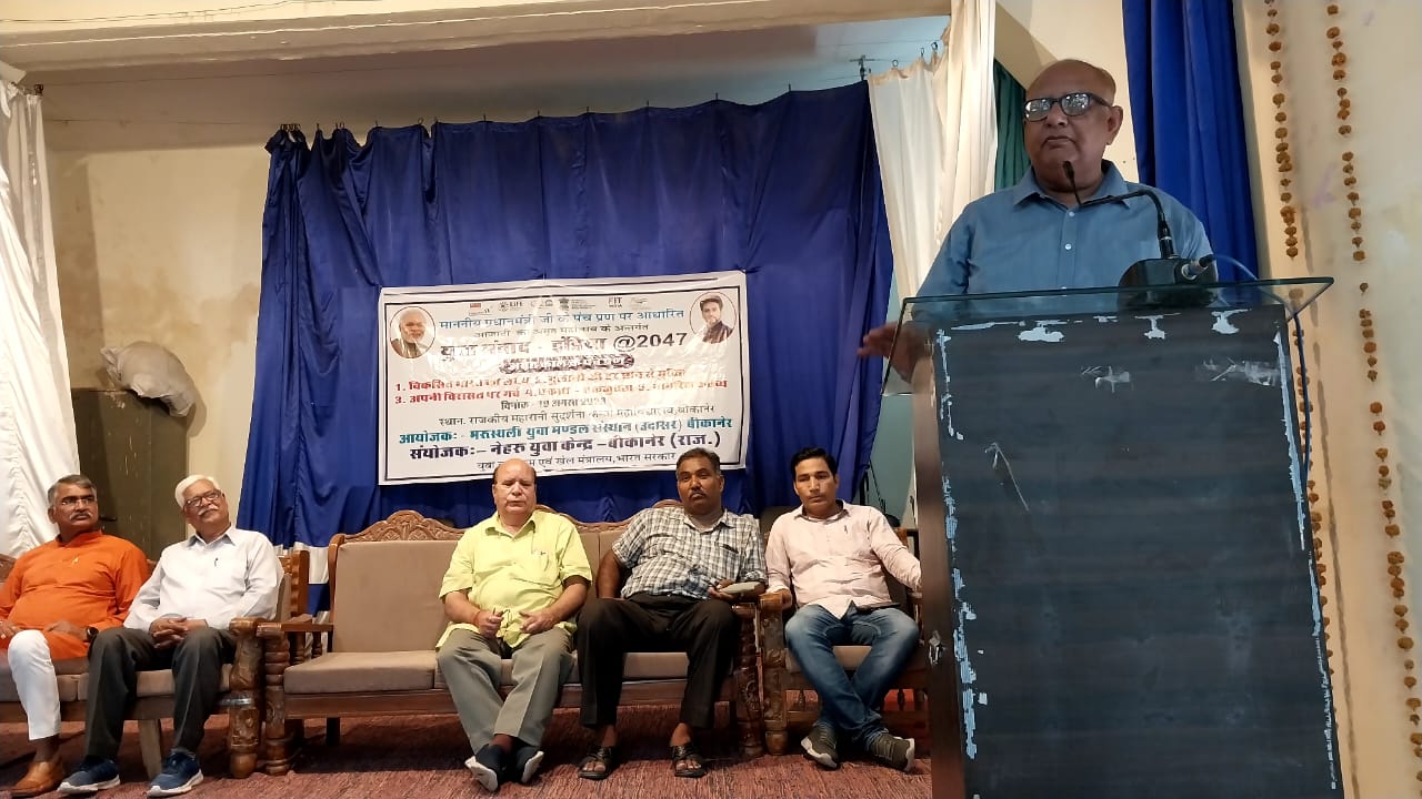 इस अवसर पर मुख्य अतिथि के रूप में बोलते हुए कवि-कथाकार राजेन्द्र जोशी ने कहा कि हमें विकसित भारत का लक्ष्य अपनी विरासत पर गर्व करते हुए नागरिक कर्तव्यों का पालन एकजुटता के साथ करना होगा। जोशी ने कहा कि युवाओं को अपना लक्ष्य निर्धारित करते हुए यह ठीक से समझ लेना चाहिए कि मेरा लक्ष्य ही भारत का लक्ष्य होगा, युवा जिस दिशा में जाएगा भारत देश उसी दिशा में आगे बढ़ेगा, जोशी ने कहा कि हमें 2047 तक भारत को दुनिया के अन्य देशों के बराबर लाने का प्रयास सफल बनाना है। उन्होंने युवाओं से आह्वान किया कि वह शिक्षा का रास्ता अपनाते हुए भविष्य की ओर बढ़े, जोशी ने कहा कि भारत सौभाग्यशाली देशों में से है जिसकी अधिकतर आबादी युवा है। और युवाओं को विकसित भारत बनाने का लक्ष्य तय करना होगा। उन्होंने युवाओं से संवाद करते हुए उनकी जिज्ञासाओं को शांत किया। इस अवसर पर मुख्य वक्ता डॉ.अजय जोशी ने कहा कि किसी भी विषय पर हम अध्ययन करें एकाग्रता एवं मेहनत के साथ करते हुए लक्ष्य की ओर आगे बढ़ना होगा।