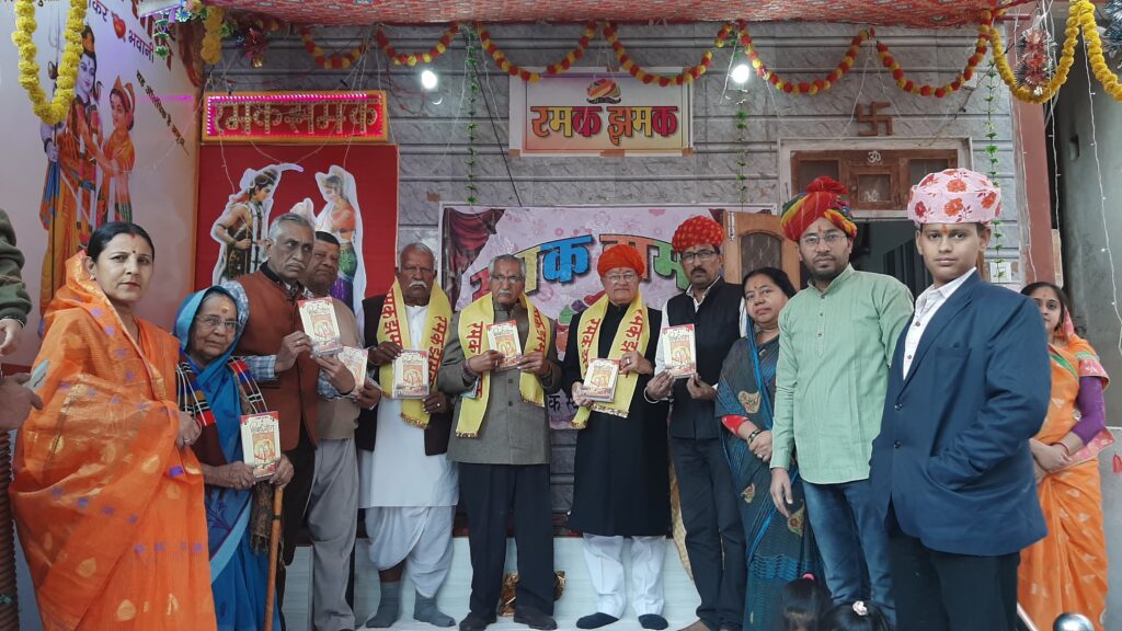 बीकानेर।पुष्करणा सावे के अवसर पर रमक झमक के प्रहलाद ओझा ‘भैरुं’ द्वारा संकलित व सम्पादित पुस्तक ‘रमक झमक विवाह गीत’ का आज रमक झमक मंच पर पूर्व मंत्री डॉ बी डी कल्ला,राजस्थानी भाषा साहित्य अकादमी अध्यक्ष शिवराज छंगाणी,पुजारी बाबा,श्रीमती रामकँवरी ओझा,लक्ष्मी ओझा,प्रेम छंगाणी, एवं अविनाश आचार्य ने किया। इस अवसर पर डॉ बी डी कल्ला ने कहा कि पुष्करणा ब्याव पर गाए । जाने वाले गीत हमारी सास्कृतिक धरोहर है। कल्ला ने कहा कि यहां हर रस्म व परम्पराओं पर गीत गाए जाते है और उन गीतों की स्वर लहरियां सुनकर दूर से अनुमान भी लगाया जा सकता है कि ब्याव की किस परम्परा का निर्वहन हो रहा है। उन्होंने कहा कि ‘म्हारे मगरे रा मूंग मंगाओ ए म्हारी पीठी सुगन मनाओ ए’ इसे सुनने मात्र से पता चल जाता है ब्याव में हल्दी पीठी की रस्म चल रही है।शिवराज छंगाणी ने कहा कि ‘ रमक झमक विवाह गीत’ एक महताऊ पुस्तक है जिसमें जिसकी स्वयं मैंने परख लिखी है इसमें शामिल कई गीत जैसे ‘सोबेला’ व सुता सेण’ आदि ऐसे है जो अब लगभग लुप्त हो रहे है ऐसे इसमें शामिल होना यह दर्शाता है कि इसके लेखक प्रहलाद ओझा ‘भैरुं’ ने खूब मेहनत की है।यह ऐतिहासिक पुस्तक होगी।