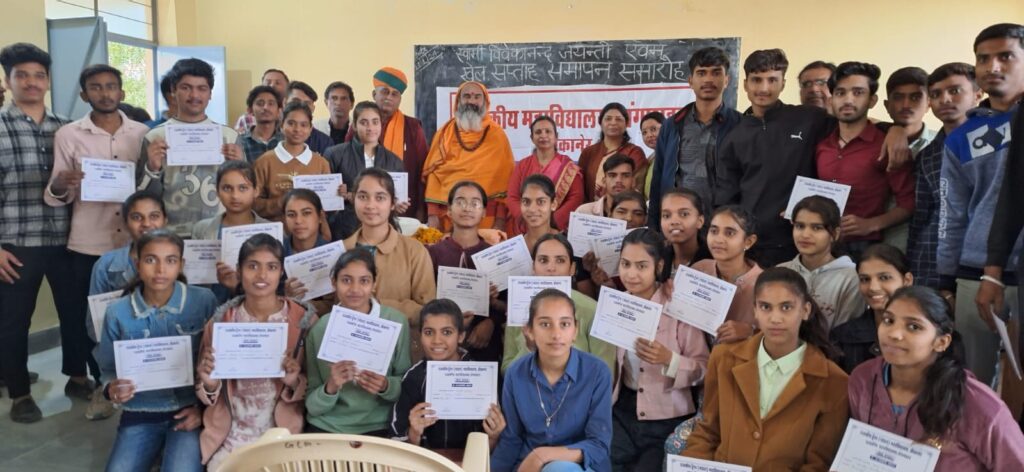इस अवसर 110 विजेताओं को प्रशस्ति पत्र प्रदान किए गए। मासिक व्याख्यानमाला तथा स्वामी विवेकानंद जयंती के अवसर पर मुख्य वक्ता राजकीय महारानी सुदर्शन महाविद्यालय में दर्शन शास्त्र विभाग की अध्यक्ष प्रोफेसर अजंता गहलोत ने युवा को परिभाषित करते हुए विद्यार्थियों से स्वामी विवेकानंद के जीवन दर्शन का अध्ययन कर अपनाने को की बात कही।