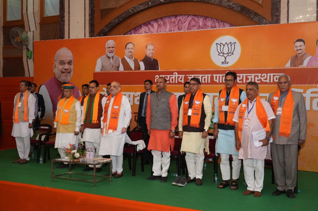 अमित शाह ने अपने संबोधन में कहा मेरा सौभाग्य है लोकसभा चुनाव में तीन सीट देने वाले बीकानेर से इस कलस्टर बैठक की शुरुवात हो रही है शाह ने कहा दुनिया में बहुत सारे राजनीति दल है पर भारतीय जनता पार्टी ऐसा दल है जिसका चुनाव जीतने का कारण नेता नही कार्यकर्ता है कांग्रेस आज चंद नेताओं की पार्टी बनकर रह गई जिसके पास अब कार्यकर्ता नही बचे राजस्थान में कांग्रेस के पास ऐसा कोई नेता नही है जिसको राज्यसभा भेज सके इसलिए सोनिया गांधी को राजस्थान से राज्यसभा भेजा जा रहा है कांग्रेस का हाल इतना बुरा है 18 राज्यों में कांग्रेस विपक्ष में भी नही बची है हम विचारधारा की पार्टी है हमारा लक्ष्य पार्टी बनाना नही है हमारा लक्ष्य देश को सक्षम बनाने का है आज 17 प्रदेशों में हमारी सरकार है पंचायत से पार्लियामेंट तक आज कमल ही कमल है शाह ने कहा अबकी बार 400 पार का नारा मन को सुकून देने वाला है पर ये लक्ष्य तभी पूरा होगा जब हम अपने बूथ पर मजबूत रहेंगे और हर नेता और कार्यकर्ता को अपने बूथ को मजबूत करने पर विशेष जोर देना होगा नव मतदाता आज प्रधानमंत्री नरेंद्र मोदी की नीतियों के साथ है जैसे महाभारत के युद्ध में कौरव और पांडव दो खेमे थे वैसे ही आज चुनाव से पहले दो खेमे हैं इनमें से एक खेमा प्रधानमंत्री नरेंद्र मोदी के नेतृत्व में भाजपा नीत राजग है और दूसरा कांग्रेस के नेतृत्व वाला ‘इंडिया’ गठबंधन है ‘इंडिया’ गठबंधन ऐसी पार्टियों का गठबंधन है जो वंशवाद, भ्रष्टाचार, तुष्टिकरण की पोषक हैं, जबकि भाजपा नीत राजग सभी दलों का गठबंधन है, जो राष्ट्र के सिद्धांतों पर चलता है शाह ने कहा हमे देश के लोगों को यह तय करना होगा कि वे इस बार दोनों में से किसे जनादेश देना चाहते हैं। उन्होंने इन पार्टियों को चलाने वाले परिवारों की दूसरी, तीसरी और चौथी पीढ़ी की ओर इशारा करते हुए कहा कि विपक्ष में ‘टू-जी’, ‘थ्री-जी’ और ‘फोर-जी’ पार्टियों की भरमार है। आज की बैठक में गृहमंत्री अमित शाह जी के साथ मुख्यमंत्री भजनलाल शर्मा, भाजपा प्रदेशाध्यक्ष सीपी जोशी, केंद्रीय मंत्री अर्जुनराम मेघवाल, पूर्व प्रदेशाध्यक्ष सतीश पूनिया, पूर्व उपनेता प्रतिपक्ष राजेंद्र राठौड़, केबिनेट मंत्री गजेंद्र सिंह खींवसर, सुमित गोदारा, अविनाश गहलोत, बीकानेर संभाग प्रभारी सी.आर. चौधरी, संभाग सह प्रभारी श्रवण सिंह बगड़ी, सांसद निहालचंद मेघवाल, राहुल कस्वा उपस्थित रहें