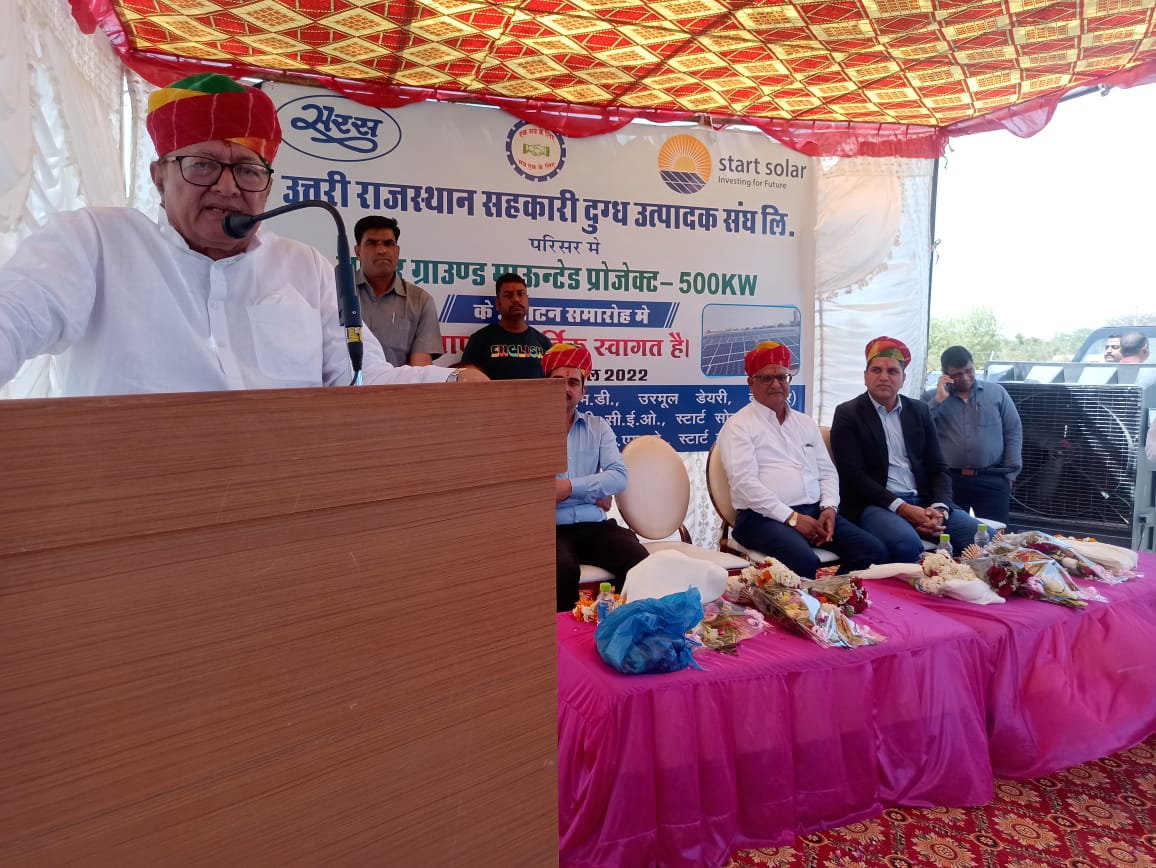 उरमूल डेयरी के प्रबंध संचालक एसएन पुरोहित ने बताया कि 500 किलोवाट के सोलर संयंत्र की स्थापना में उरमूल द्वारा राशि वहन नहीं की गई है। पच्चीस वर्ष के पीपीए अनुबंध के तहत स्टार्ट सोलर प्राइवेट लिमिटेड द्वारा इसका निर्माण करवाया गया है तथा इस अवधि में इसकी देखभाल भी कम्पनी द्वारा ही की जाएगी। उन्होंने बताया कि सोलर संयंत्र की स्थापना से प्रतिमाह 70 हजार यूनिट बिजली बनेगी। इससे प्लांट को प्रतिमाह लगभग 4 लाख रुपए की बचत होगी।