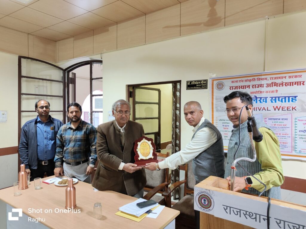 बीकानेर, ।राजस्थान राज्य अभिलेखागार के अभिलेख सप्ताह के तहत बुधवार को तीन व्याख्यानों का आयोजन किया गया। पहले व्याख्यान में दिल्ली राज्य अभिलेखागार के उपनिदेशक संजय गर्ग द्वारा ‘डिजिटाइजेशन व माइक्रोफिल्मिंग’ शीर्षक पर ऑनलाईन व्याख्यान दिया गया। उन्होंने बताया कि डिजिटाइजेशन व माइक्रोफिल्मिंग अभिलेखीय दस्तावेजों के संरक्षण का आधुनिक एवं सशक्त माध्यम है। यह शोधार्थी के 42 प्रतिशत शोध समय को बचाता है। इस व्याख्यान में देश-विदेश के शोधार्थियों एवं इतिहासकारों ने ऑनलाइन भाग लिया। अभिलेखागार के उप निदेशक चन्द्रसेन सिंह शेखावत ने अध्यक्षता की। उन्होंने बताया कि भारत में सर्वाधिक 4 करोड़ पृष्ठों को डिजिटाइज करने के दिल्ली अभिलेखागार के कार्य से राजस्थान अभिलेखागार भी प्रेरणा लेगा और डिजिटाइजेशन कार्य को और आगे बढ़ाएगा। इसी श्रृंखला में सांय दूसरे व्याख्यान में महाराजा गंगासिंह विश्वविद्यालय के पूर्व डीन प्रो. शिव कुमार भनोत ने ‘पश्चिमी राजस्थान में पंचायत-राज्य संबंध’ शीर्षक अभिलेखीय स्त्रोतों पर आधारित व्याख्यान दिया और मध्यकालीन इतिहास में गुड गर्वनेंस व्यवस्था पर भी प्रकाश डाला।