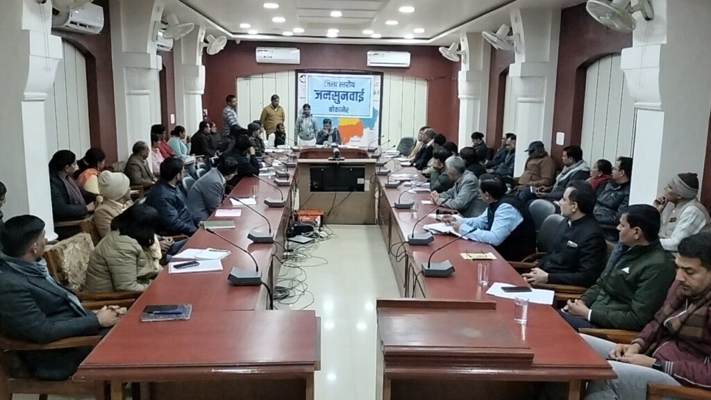 बीकानेर,। जिला स्तरीय जनसुनवाई गुरुवार को कलेक्ट्रेट सभागार में आयोजित हुई। जिला कलेक्टर भगवती प्रसाद कलाल ने जनसुनवाई में आए प्रकरणों की सुनवाई की। संभागीय आयुक्त श्रीमती उर्मिला राजौरिया भी वीसी के माध्यम से जनसुनवाई से जुड़ीं।