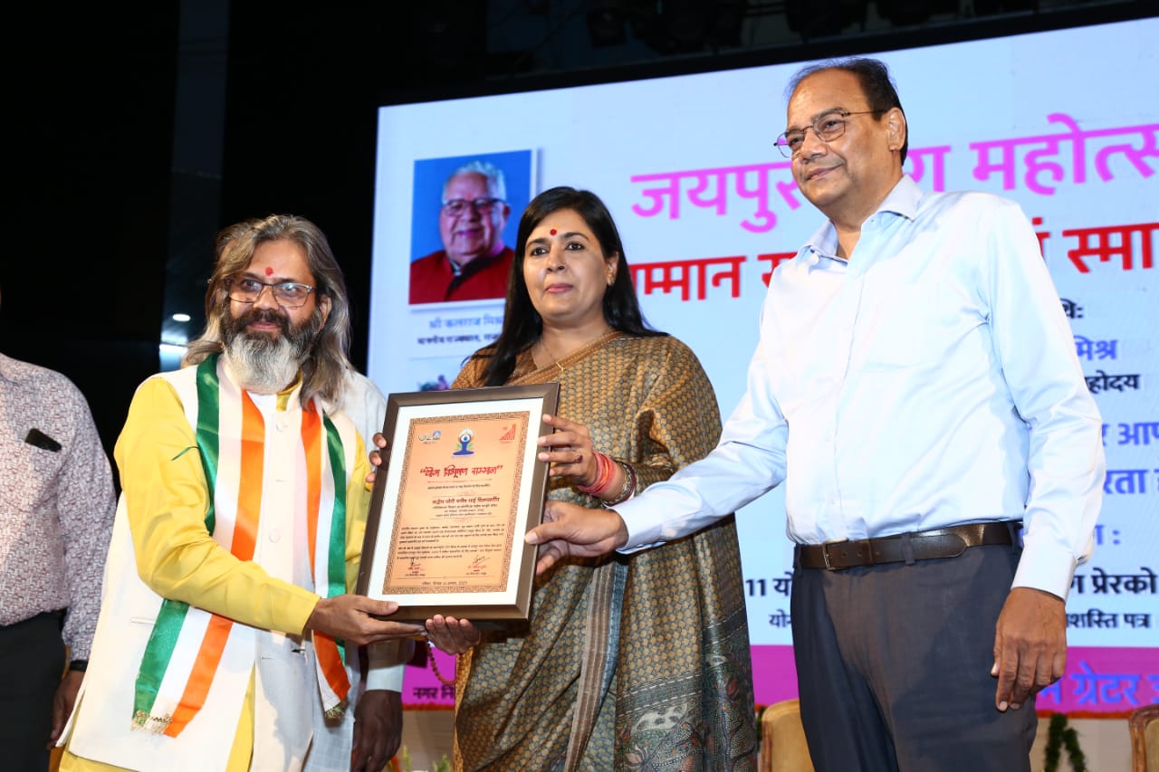 जयपुर, भारतीय संस्कार, कर्तव्य परायणता, दृढ़ संकल्प आदि गुणों के साथ योग को जीवन का अंग बनाकर प्रेरणादायक कीर्तिमान प्रस्तुत करने पर मोटिवेशनल स्पीकर एवं लाइफ कोच योगी मनीष भाई…