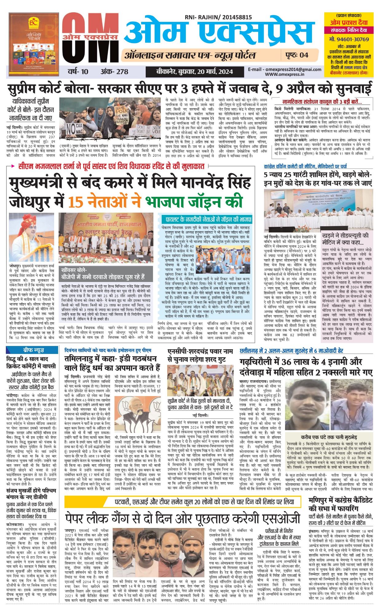 OmExpress ePaper: 20 March, 2024